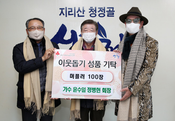 윤수일 씨는 “지난 2013년 산청세계전통의약엑스포 명예홍보대사로 위촉됐던 인연으로 머플러를 전달하게 됐다”며 “코로나19로 힘든 시기지만 모두들 따뜻한 겨울이 되시길 바란다”고 말했다.