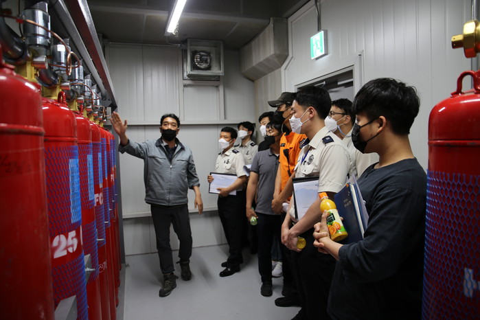 이날 현장실습에는 소방본부와 양산소방서 직원 약 40명이 참석하였으며,주요 실습내용으로는 물류시설 및 방재실 운용 시스템을 참관하고 가스계 소화설비 작동시험 및 안전사고 예방을 위한 안전장치 확인·작동실습 등이다.
