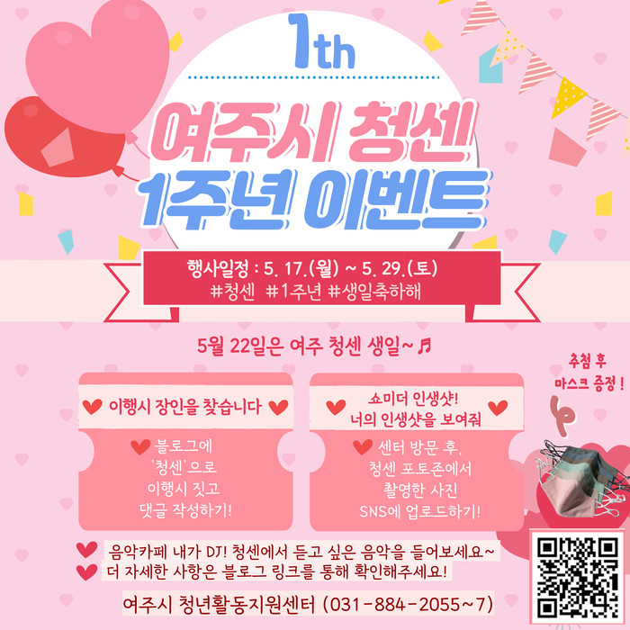 [여주=박근출 기자]여주시 청년활동지원센터가 오는 29일까지 센터 개소 1주년을 맞이해 5월 17일부터 2주간 1주년 기념 이벤트를 개최한다.