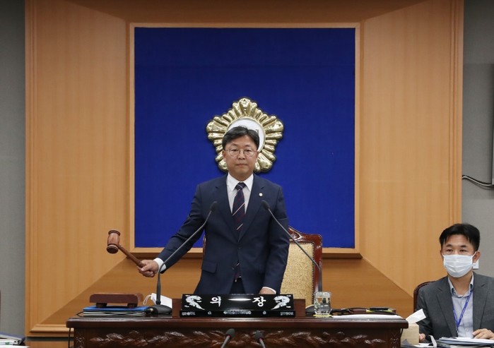 | ▲ 이용균 의장이 제237회 임시회 폐회를 선언하고 있다. (사진제공=강북구의회) |