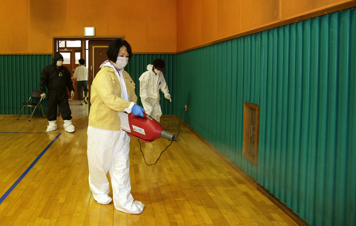 박경희 서울 서대문구의회 의장이 최근 신촌지구대 생활안전협의회와 함께 코로나19 확산 방지를 위해 지역내 한 초등학교를 찾아 학교내 화장실과 식당, 시청각실 등 곳곳을 방역했다. 사진은 박 의장이 학교 시설을 소독하고 있는 모습. (사진제공=서대문구의회)