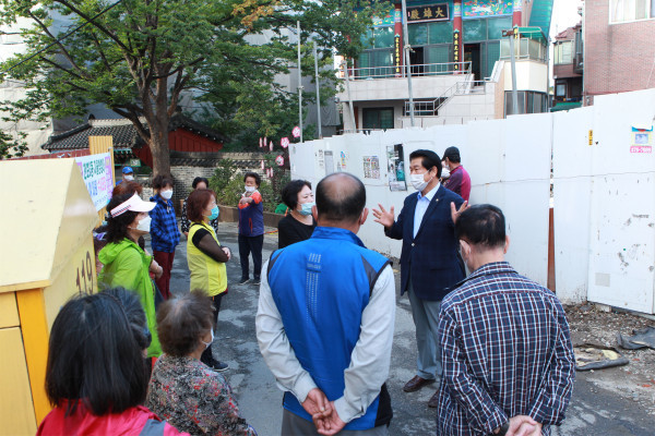 | ▲ 양평호(천호1·3동) 의원이 최근 지역 주민들과 민원 해결을 위한 대화를 나누고 있다. (사진제공=강동구의회) |