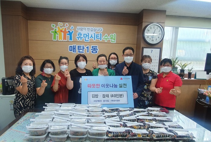 [수원=임종인 기자] 경기 수원시의회 유준숙 의원과 (사)경기도전통음식협회는 최근 회원들이 조리한 간식(40인분)을 영통구 매탄1동에 후원했다.