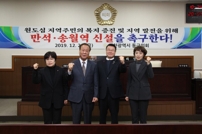 또 제5차 본회의에서는 만석·송월역 신설을 관련부처 및 기관에 강력히 촉구하고, 주민의 삶의 질 향상과 원도심 발전을 위한 만석·송월역 신설에 동구의회가 지속적인 관심을 갖고 노력할 것을 내용으로 한 결의안을 채택하기도 했다.