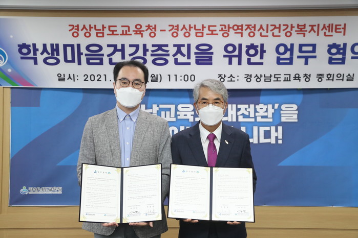 경상남도교육청(교육감 박종훈)은 24일 본청 2층 중회의실에서 경상남도광역정신건강복지센터(센터장 이철순)와 『학생 마음건강 증진』을 위한 업무협약을 체결한다.