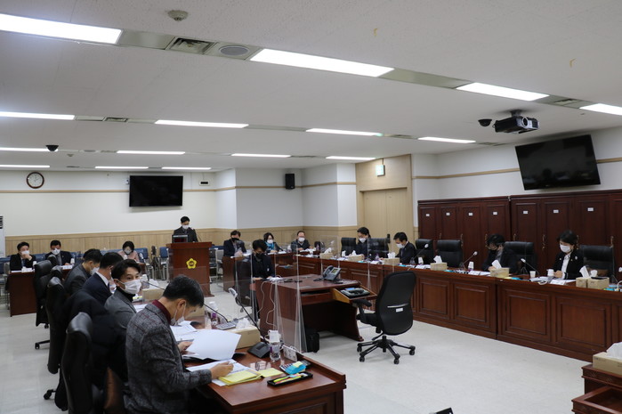| ▲ 경기도체육회 조사특위 위원들이 제348회 정례회 제1차 조사특위를 진행하고 있다. (사진제공=경기도의회) |