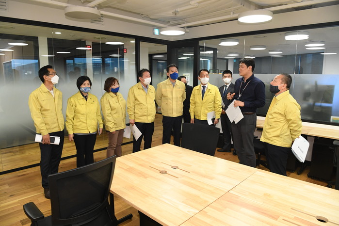 | ▲ 서울시 제2핀테크랩에 방문해 관계자의 설명을 청취하고 있는 위원들 모습. (사진제공=영등포구의회) |