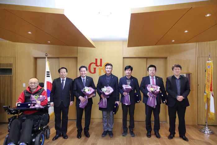 [시민일보 = 이대우 기자] 서울 구로구의회(의장 박칠성) 김영곤·박평길·박동웅 의원이 최근 구청 창의홀에서 민관협치 활성화에 기여한 공로를 인정 받아 구로구협치회의 위원들로부터 감사패를 전달받았다.