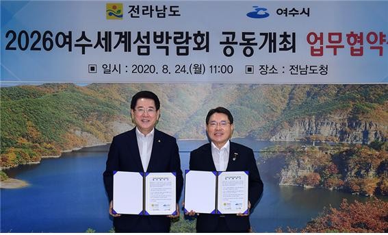 시는 24일 전라남도와 전남도청 VIP실에서 2026여수세계섬박람회의 성공적 추진 을 위한 공동개최 업무협약을 체결했다고 밝혔다.