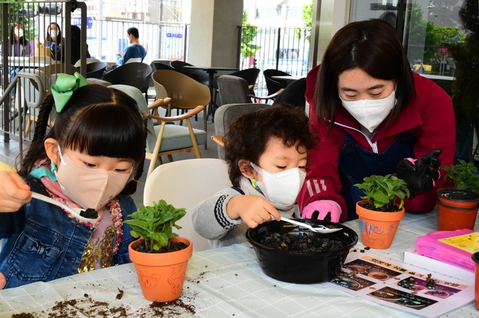 | ▲ 방정환교육지원센터에서 열린 ‘어린이 꿈 잔치’에서 어린이들이 ‘토분에 그림그리기’ 체험활동을 하고 있다.(사진제공=중랑구청) |
