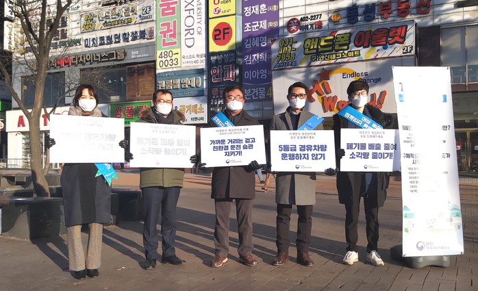 경기 안산시는 최근 안산선 중앙역 인근에서 미세먼지 계절관리제 홍보 캠페인을 펼쳐 미세먼지 계절관리제와 미세먼지를 줄이고 건강을 지키는 실천방법을 알리며 시민들의 적극적인 참여를 당부했다. 사진은 참가자들이 현수막, 피켓 및 홍보물 등을 활용해 캠페인을 하고 있는 모습. (사진제공=안산시청)