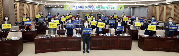 시의회 의원들은 본회의 종료 후 125만 시민의 염원을 담아 국회에 회부된 '지방자치법 전부개정안'이 연내에 반드시 처리돼야 함을 강력히 촉구하는 피켓 퍼포먼스를 펼치기도 했다.