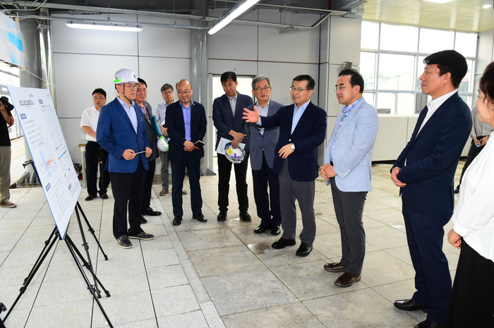 ▲ 신내역 임시승강장을 방문한 류경기 구청장이 박홍근 국회의원 및 관계자 등과 이야기를 나누고 있다. (사진제공=중랑구청) |