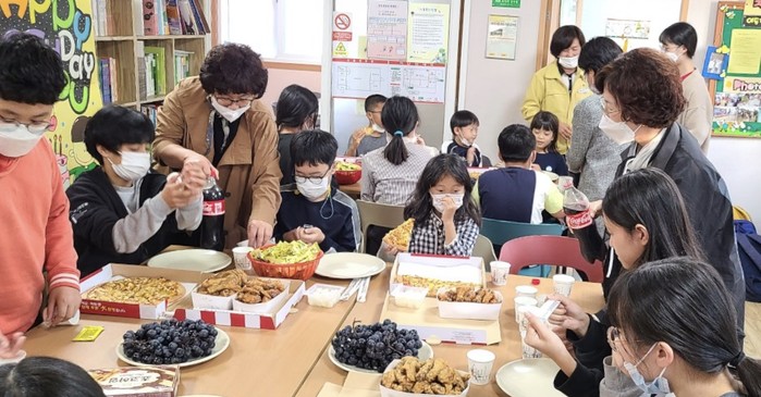 정심회 회원들은 아이들이 좋아하는 생일 케익 및 피자, 치킨 등을 준비해 적중지역아동센터를 방문했고, 특히 오랫동안 많은 아이들이 읽을 수 있도록 베스트셀러인 아동 역사책 전집을 선물로 준비했다.