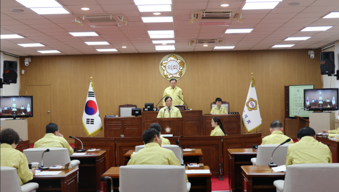 한편 정인균 의장은 개회사에서 코로나19 위기경보가 최고 단계인 ‘심각’으로 격상돼 코로나19의 지역사회 전파가 현실화됨에 따라 지역경제가 받는 피해와 군민들이 받는 불안감을 우려했다.