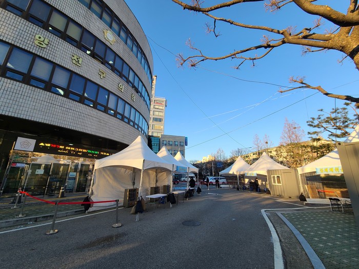 | ▲ 구의회 주차장에 설치된 임시선별소. (사진제공=양천의회) |