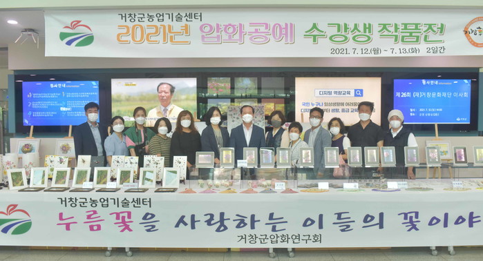 거창군은 12일과 13일 양일간 군청 1층 로비에서 압화공예 교육생 33명의 실습작품 100여 점을 전시하고 있다.