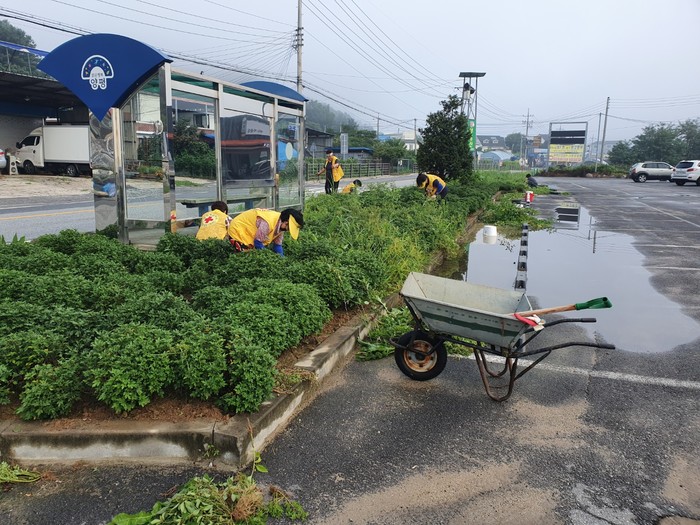 경기 양평군 양동면 대한적십자는 최근 쌍학리 일대 도로변에서 쓰레기 수거 및 화단 제초작업 등 도로변 환경정화 활동을 실시했다. 사진은 이날 봉사에 참여한 회원들이 화단 제초작업을 하고 있는 모습. (사진제공=양평군청)