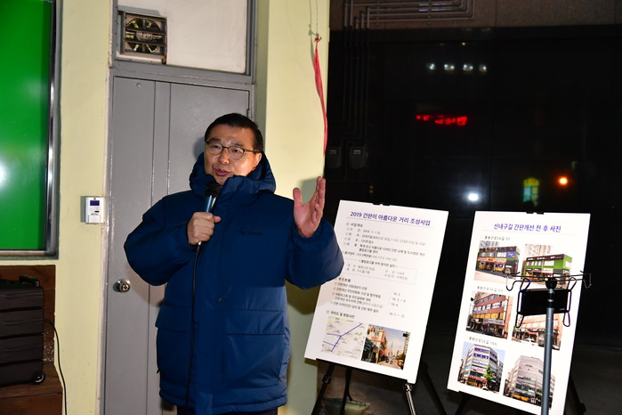 | ▲ 류경기 구청장이 간판개선 사업에 대해 설명하고 있다.(사진제공=중랑구청) |