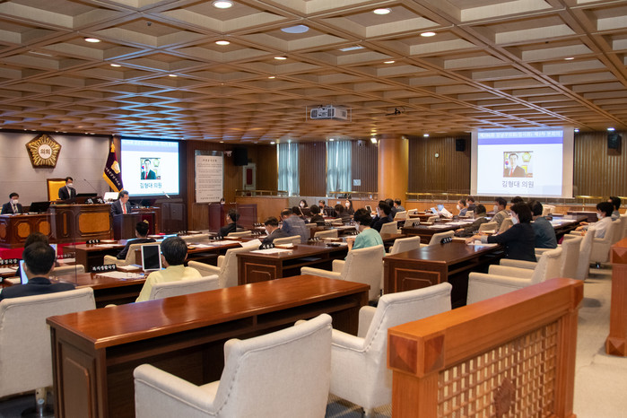 이어 한용대 의장은 “이번 회기 동안 추경예산안과 안건심의 등으로 열정적인 의정활동을 해주신 의원 여러분께 진심으로 감사 드린다”며, “심도있는 토론의 장을 보면서 결과를 떠나 생동감이 넘치는 의회를 만들어준 의원 여러분께 참 고마웠다”는 말로 회의를 마무리했다.