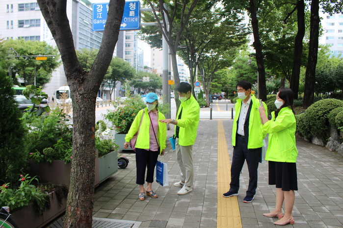 서울 강남구가 최근 100명으로 구성된 ‘주민생활 작은 불편사항 개선단’을 운영한 결과, 총 1163건의 생활 속 불편사항을 해소했다. 사진은 도로에 설치된 화단 정비에 대해 논의를 하고 있는 개선단의 모습. (사진제공=강남구청)