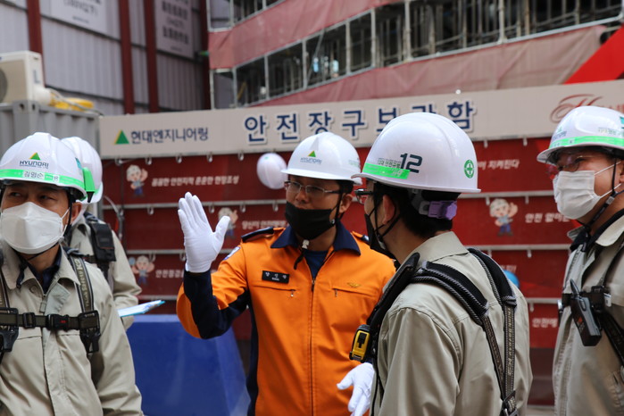 경기 부천소방서는 최근 이천 물류창고 화재를 계기로 지역내 3000㎡ 이상 신축공사장, 물류창고 등 44곳을 대상으로 화재 취약요소, 임시소방시설 설치 여부와 관련한 관리상태 등 화재 안전 관리 강화 컨설팅을 실시했다. 사진은 관계자들이 점검을 하고 있는 모습. (사진제공=부천소방서)
