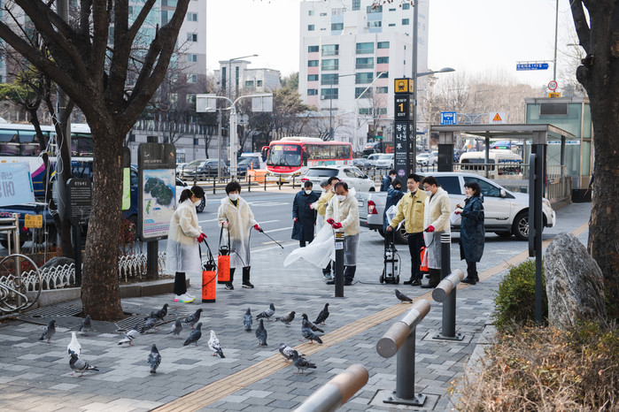 | ▲ 광나루역 부근에서 광진구의원들이 방역 활동을 하고 있다. (사진제공=광진구의회) |