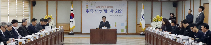 최근 송파구협치위원회가 구청 대회의실에서 개최된 ‘송파구협치위원회 위원 위촉식 및 1차 회의’를 시작으로 본격적인 활동에 들어갔다. 사진은 박성수 구청장이 송파구협치위원회와 회의를 진행하고 있는 모습. (사진제공=송파구청)