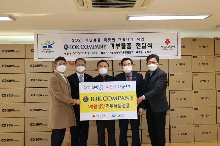 특히 이날에는 (주)IOK컴퍼니에서 1억원 상당의 기부물품을 전달했으며, 장진우 IOK컴퍼니 대표, 김세호 쌍방울 대표, 손영섭 비비안 대표가 참석했다.