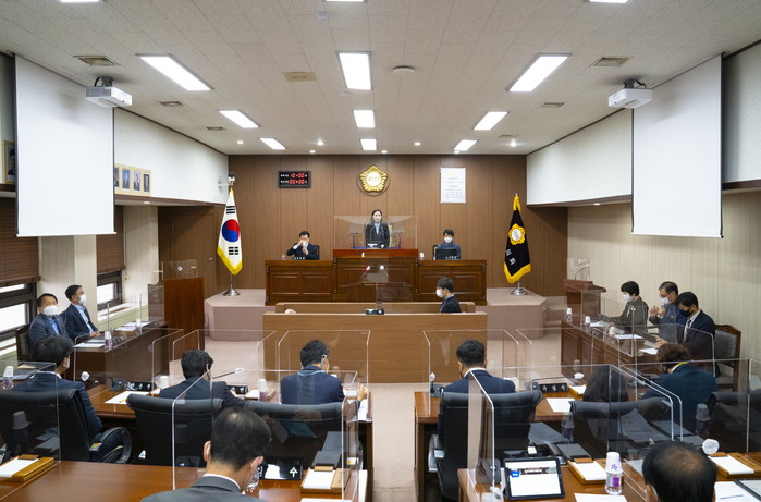 이날 회의에서는 안건 의결에 앞서 오강현 의원이 '한글 사랑, 실천하고 있는가?'를 주제로 5분 발언을 진행했으며 ▲조례안 12건 ▲2021년 정기분 공유재산 관리계획안 10건 ▲동의안 등 기타안 22건 등 총 44개의 상정 안건 처리가 뒤를 이었다.