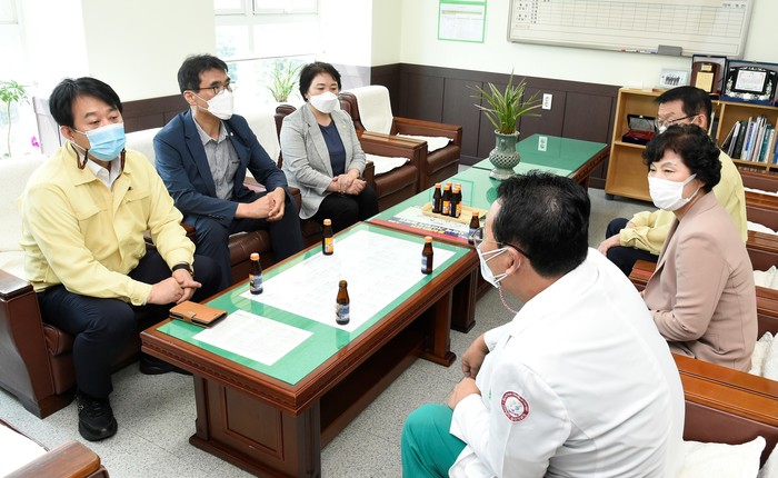이날 의료원을 방문한 허유인 의장, 박계수 부의장, 이영란 의회운영위원장, 유영갑 행정자치위원장, 김미연 도시건설위원장을 비롯한 순천시의회 관계자들은 코로나19 환자를 돌보는 의료진들의 애로사항을 청취하고 격려 물품을 전달했다.