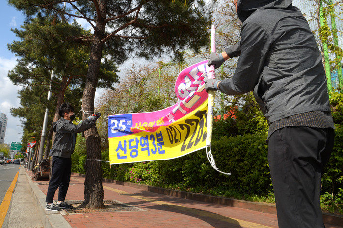 이에 구는 평일에는 1일 3회 이상 순찰 및 단속으로 간선도로 변이나 지하철역 입구, 환풍구 등에 설치된 불법 현수막은 즉시 철거한다. 특히 가로수 사이에 부착된 현수막은 모두 제거할 예정이다. 주말 등 취약시간대에는 정비 용역업체를 통해 정비에 나선다.