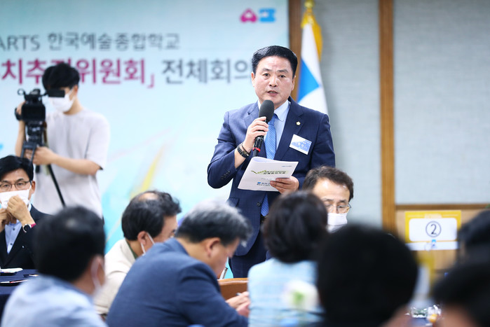 이 의장은 인사말을 통해 “후반기 의장 당선 이후 인사드리게 돼 반갑다. 무엇보다 한예종 재학생 설문조사에서 90% 가까운 학생이 송파구로의 이전을 희망하는 것으로 나타난 만큼 좋은 결과가 있을 것이라 생각한다. 그 과정에 함께할 것이며 힘을 더할 것이다”라고 말했다.