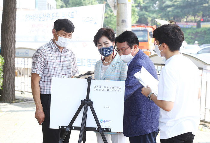 [시민일보 = 이대우 기자] 서울 송파구의회 이성자(삼전·잠실3동), 송기봉(잠실본·2·7동) 의원이 최근 삼전동 배명고등학교 앞 교차로구조개선사업 현장점검을 실시했다.