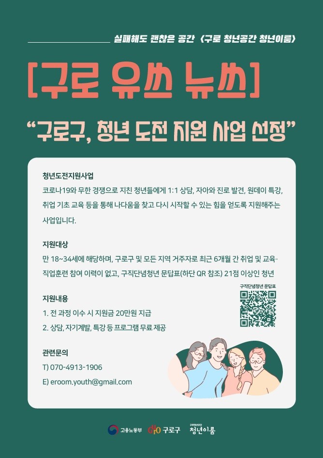 [시민일보 = 이대우 기자] 구로구(구청장 이성)가 미취업 청년들의 구직의욕을 고취하고 취업을 장려하기 위해 ‘청년도전 지원사업’을 추진한다.
