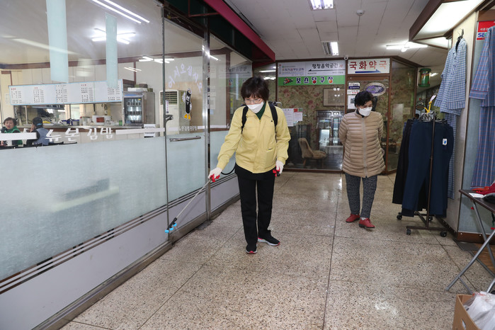 노 의원은 평창동 주민센터에서 시작해 버스정류소, 인도, 독서실, 다중집합시설 등 평창11길 일대 구석구석을 걸으며 방역작업을 실시했다.