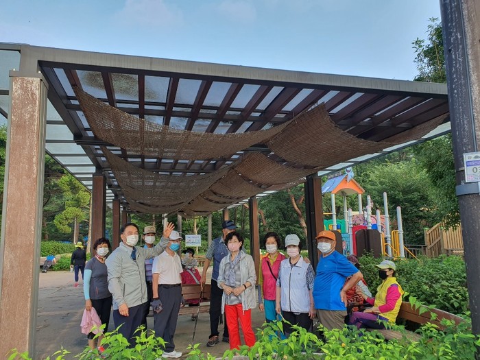 이날 오전 7시 현장을 방문한 이 의원은 운동을 하고 있는 주민들을 만나 만남의 광장 이용에 대한 불편사항을 청취했다.