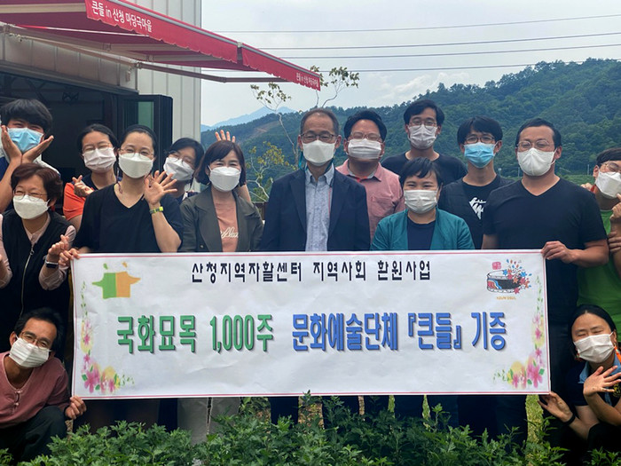 산청지역자활센터는 지역문화예술단체인 극단 ‘큰들’에 국화묘목 1000주를 기증했다고 7일 밝혔다.