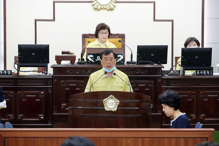 유양순 의장은 “제295회 정례회에서는 작년도 결산심사를 시작으로 금년도 제2회 추가경정예산안 및 자원순환센터 건립기금 운용계획안 심사와 집행부에 대한 행정사무감사를 끝으로 지난 2년간의 전반기 의회를 마감하게 된다”며, “아직까지 코로나19가 끝나지 않은 만큼 생활 속 거리두기와 개인위생 관리로 자신과 가족 공동체의 건강을 지켜내도록 모두의 자발적인 참여를 부탁드린다”고 말했다.