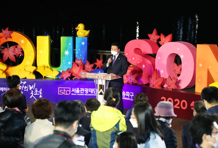 송파구 대표적 가을 축제인 이번 행사는 ‘2020 희망으로 물들다’라는 슬로건으로 내걸고 석촌호수와 송파둘레길 21㎞ 구간에서 오는 6일까지 8일간 진행된다. 특히 올해는 코로나19 상황을 감안해 워킹스루 방식을 도입하고 사색길, 포토존, 희망길, 힐링길 등으로 이어지는 테마산책로를 이동하면서 단풍과 낙엽을 만끽하고 위로와 극복의 메시지를 전달하도록 구성되었다.