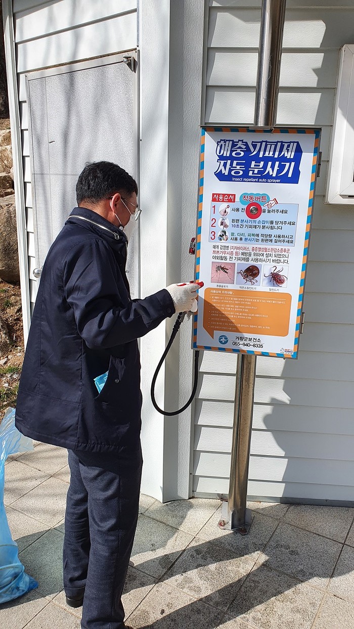 거창군은 진드기와 모기 등 해충 활동 시기가 도래됨에 따라 감염병 예방을 위해 관내에 설치된 기피제 자동분사기 11대에 대한 전수 점검을 실시했다고 18일 밝혔다.