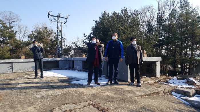 | ▲ 홍국표 의원이 관계자들과 우이방호진지 리모델링 현장을 살펴보고 있다. (사진제공=도봉구의회) |