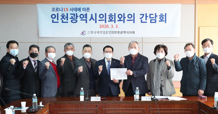 [인천=문찬식 기자] 인천시의회는 3일 한국외식업중앙회 인천시지회와 간담회를 열고 외식업계 코로나19 대응을 위한 지원방안을 논의했다.