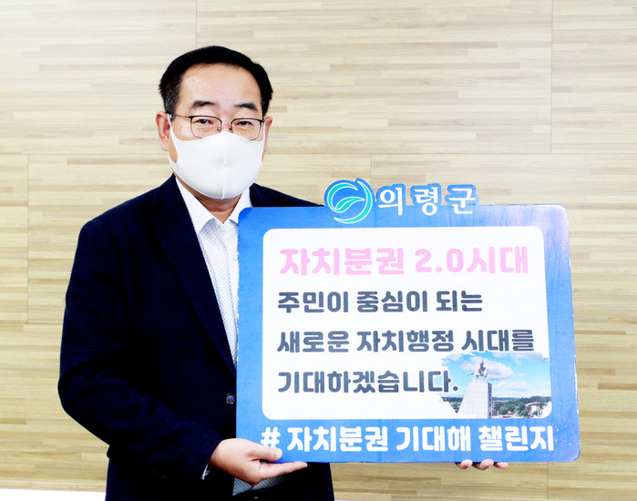 의령군 권한대행(백삼종)이 28일, 자치분권 2.0시대 개막을 응원하는 챌린지에 동참했다.