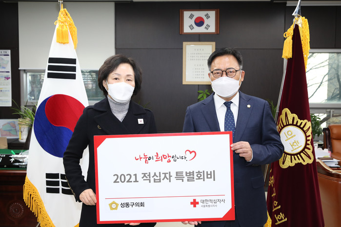 [시민일보 = 홍덕표 기자] 서울 성동구의회(의장 이성수)는 20일 구의회 의장실에서 '2021년 적십자 특별회비' 전달식을 개최했다.