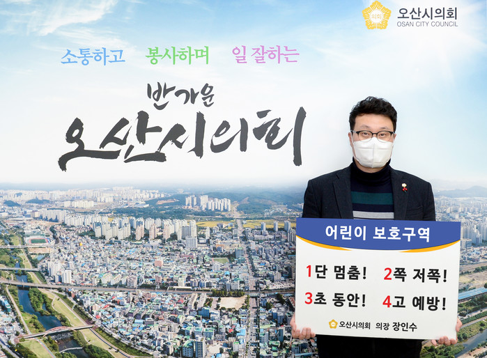 [오산=김정수 기자] 장인수 경기 오산시의장이 행정안전부 주관 어린이보호구역 내 교통안전문화 정착을 위한 '어린이 교통안전 릴레이 챌린지'에 동참했다.