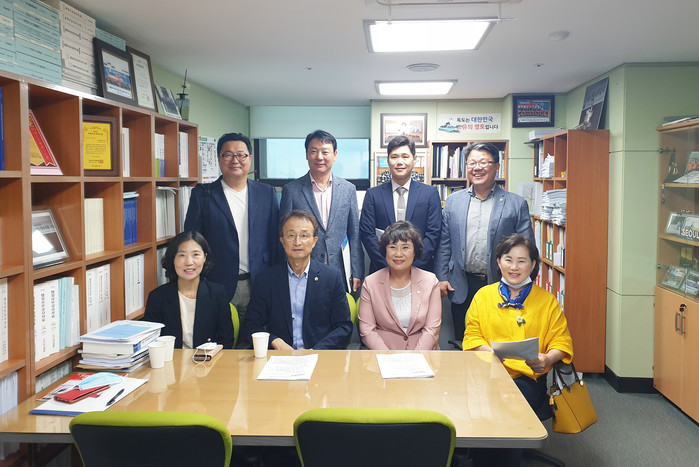 | ▲ 간담회 후 기념촬영을 하고 있는 체비지환수관련특별위원들. (사진제공=송파구의회) |
