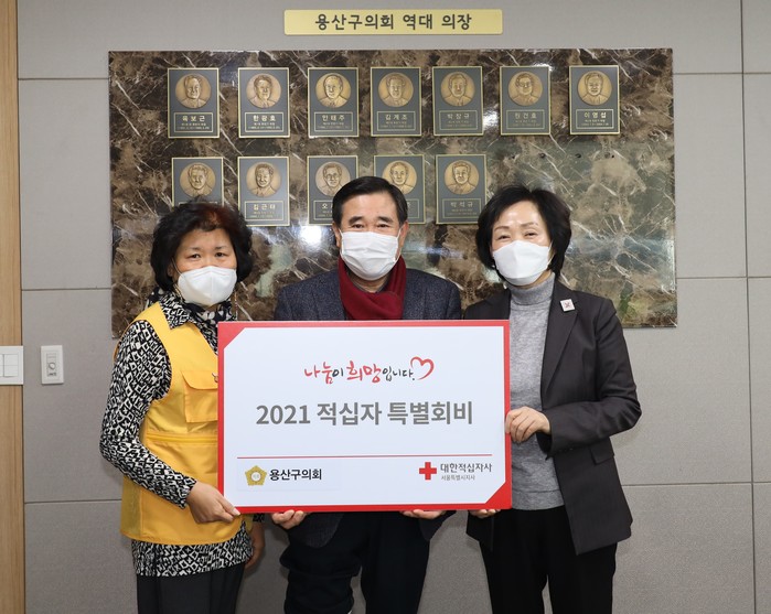 [시민일보 = 홍덕표 기자] 서울 용산구의회(의장 김정재)는 최근 구의회 의장실에서 대한적십자사 서울지사에 '2021년도 적십자 특별회비'를 전달했다고 1일 밝혔다.