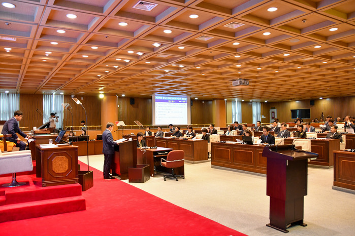 처리된 안건을 살펴보면 ▲서울특별시 강남구 저소득노인가구 국민건강보험료 등 지원 조례 일부개정조례안 ▲서울특별시 강남구 출산 ·양육 지원에 관한 조례 일부개정조례안은 수정 가결됐고, 이외에 ▲서울특별시 강남구 지방공무원 복무 조례 일부개정조례안 ▲서울특별시 강남구 건축안전특별회계 설치 및 운용 조례안은 원안가결 됐다. 아울러 ▲개포우성7차아파트 재건축 정비계획 결정 및 정비구역 지정을 위한 의견청취의 건도 처리됐다.