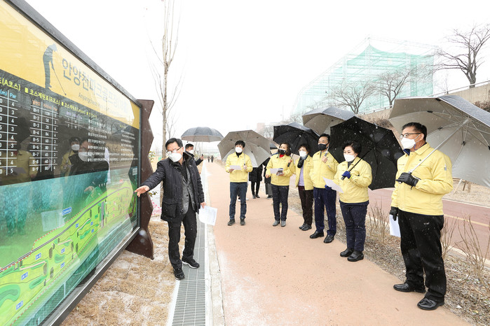 이후, 위원들은 안양천으로 이동해 지난해 12월 고척교 인근에 조성된 18홀 규모의 파크골프장과, 맞은편 리틀야구장을 차례로 둘러보며 체육시설의 안전관리 실태와 현안사항을 점검했다. 위원들은 시설을 관리하고 있는 구청 관계자에게 운영 개선 방안 등을 제시하며 이용자들의 안전과 시설 관리에 만전을 기해줄 것을 주문했다.